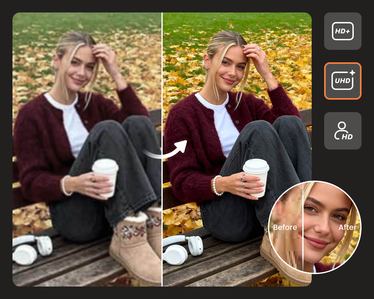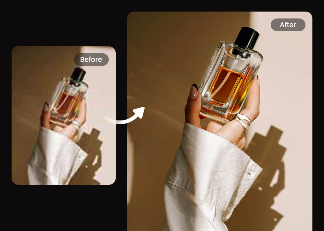 Mit dem Bildschärfer von Airbrush können Sie Bilder mit Leichtigkeit schärfen. Verbessern Sie die Bildschärfe, beheben Sie Verschwommenes und heben Sie jedes Detail in Sekundenschnelle hervor. Perfekt für Porträts, Landschaften und alle Fotos, die einen klaren, aufpolierten Look benötigen.