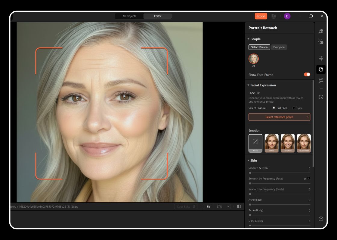 Captured a great photo, but noticed fine lines or tired-looking skin? Airbrush AI Wrinkle Remover helps you smooth face wrinkles naturally, keeping your features soft and expressive. Refresh your portraits easily and bring back a youthful, radiant glow, all for free.