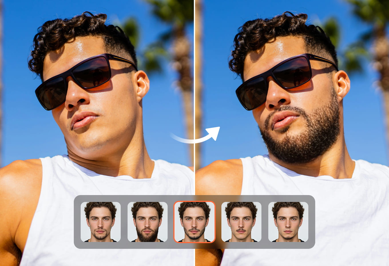 Выберите стиль бороды, который хотите попробовать, и наложите его на фото.