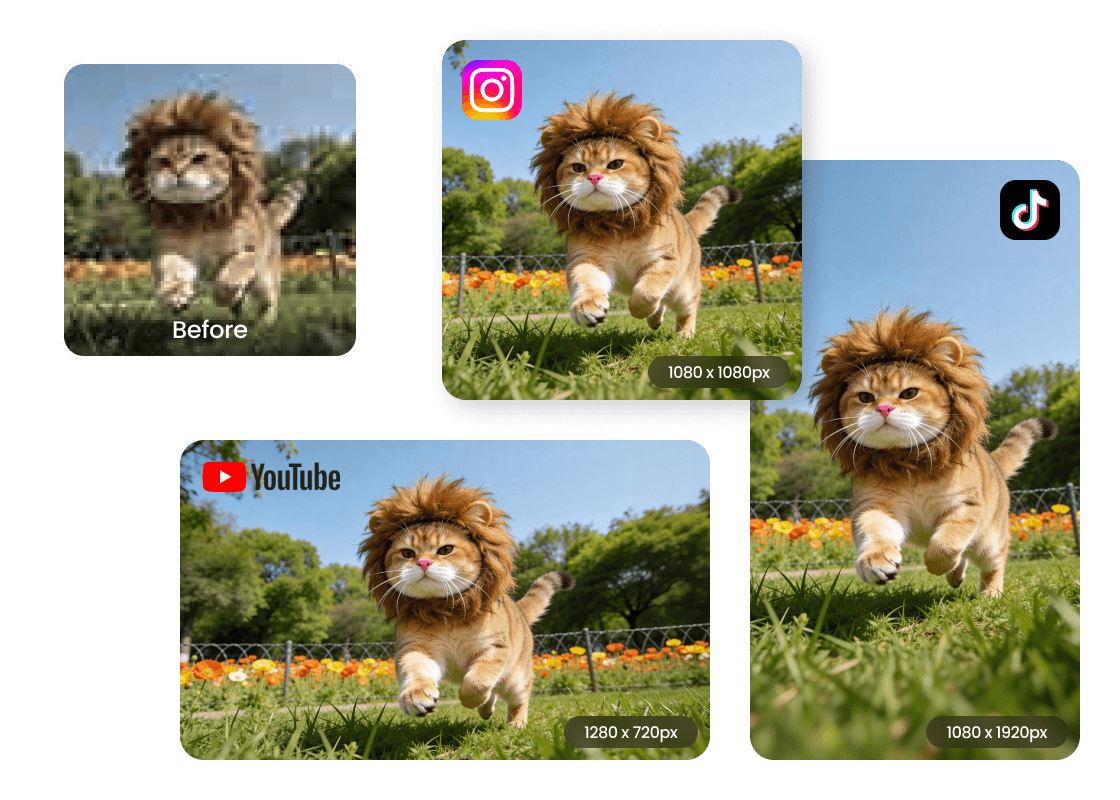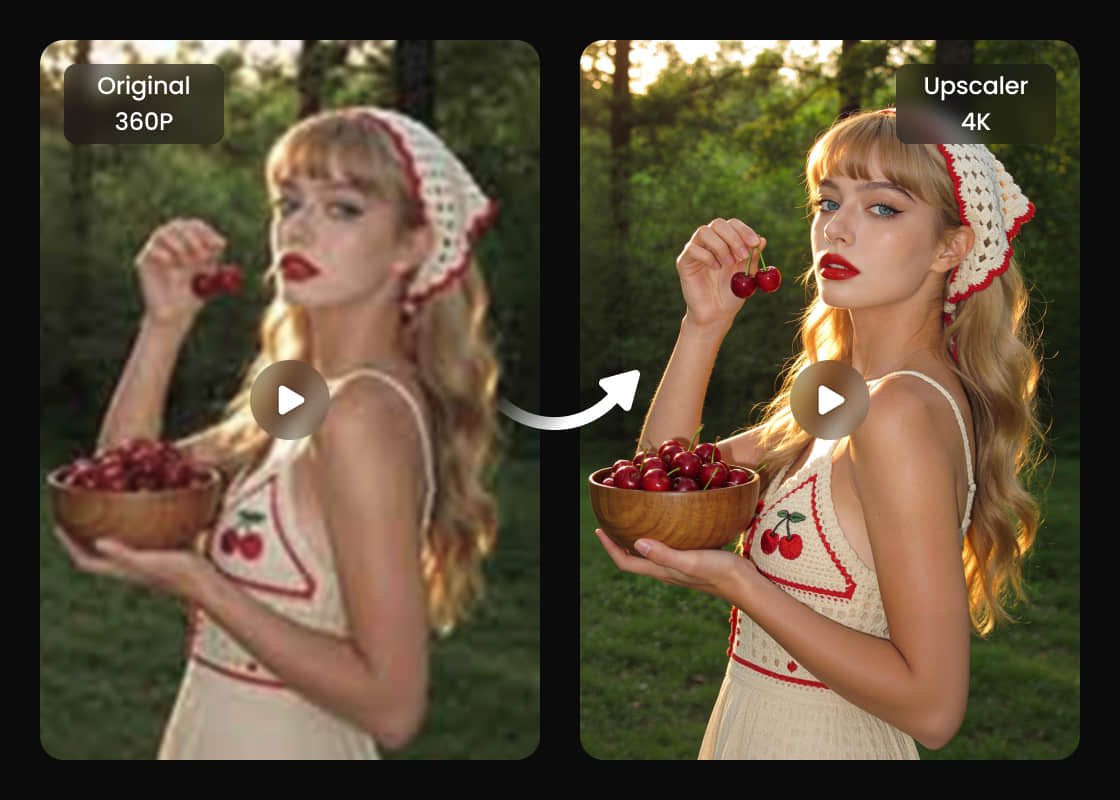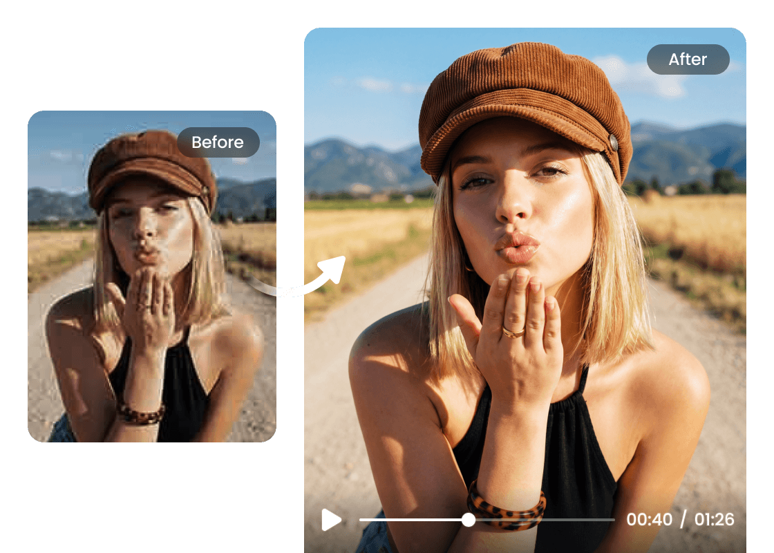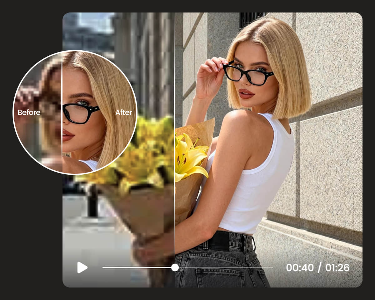 Увеличить качество видео реально с ИИ-масштабированием видео Airbrush. Улучшите разрешение, сделайте четче детали и поднимите на новый уровень видеоматериалы низкого качества с помощью умной нейросети, получив более четкий, естественный и профессиональный результат.